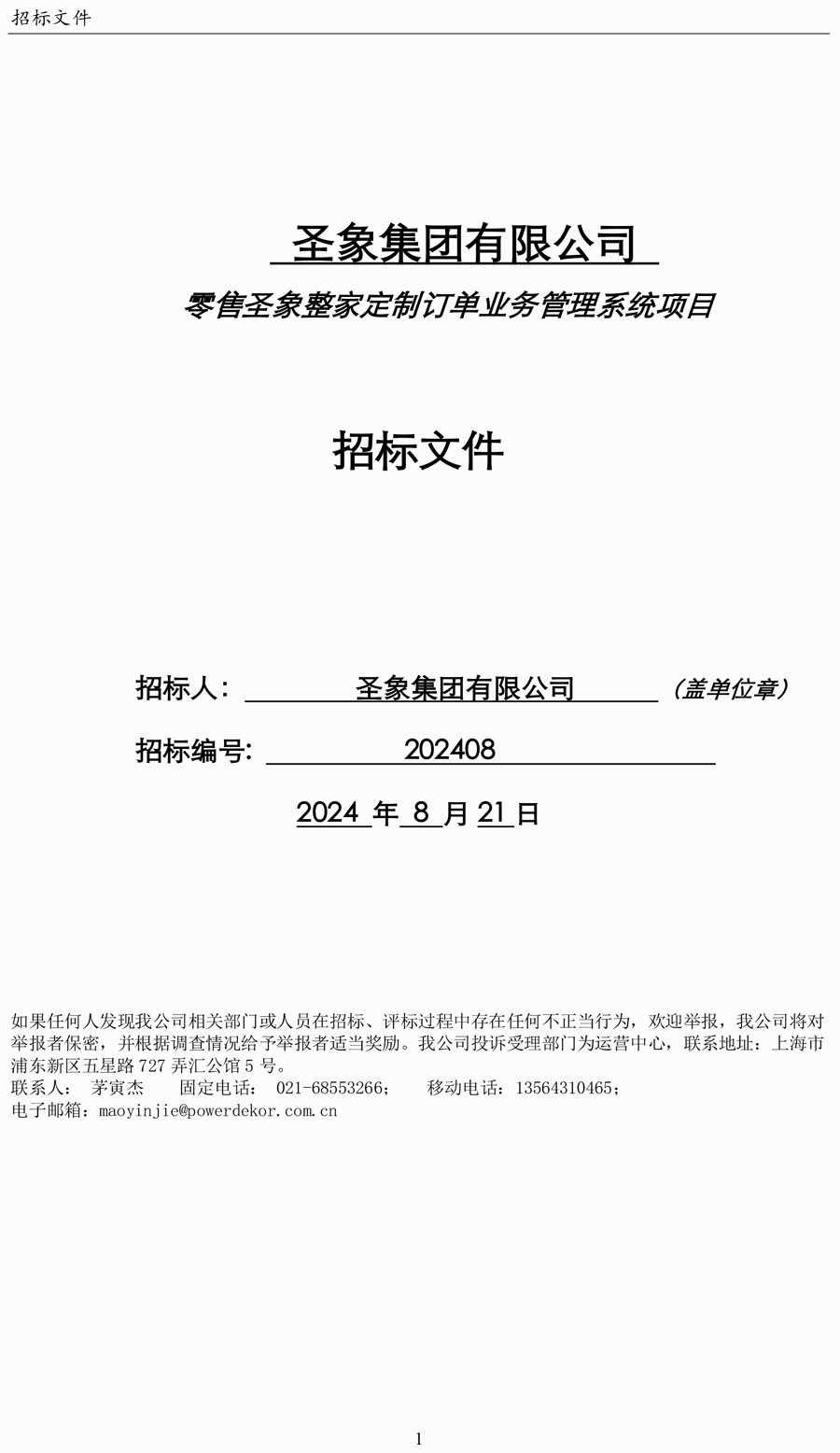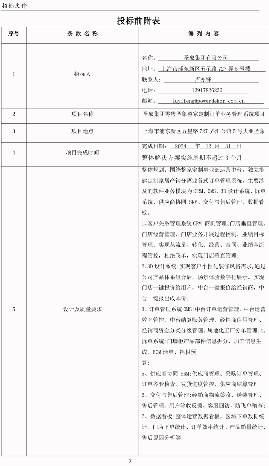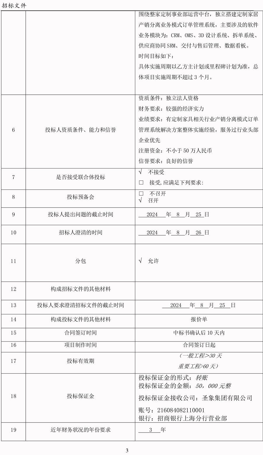 圣象集团有限公司零售圣象整家定制订单业务管理系统项目招标文件