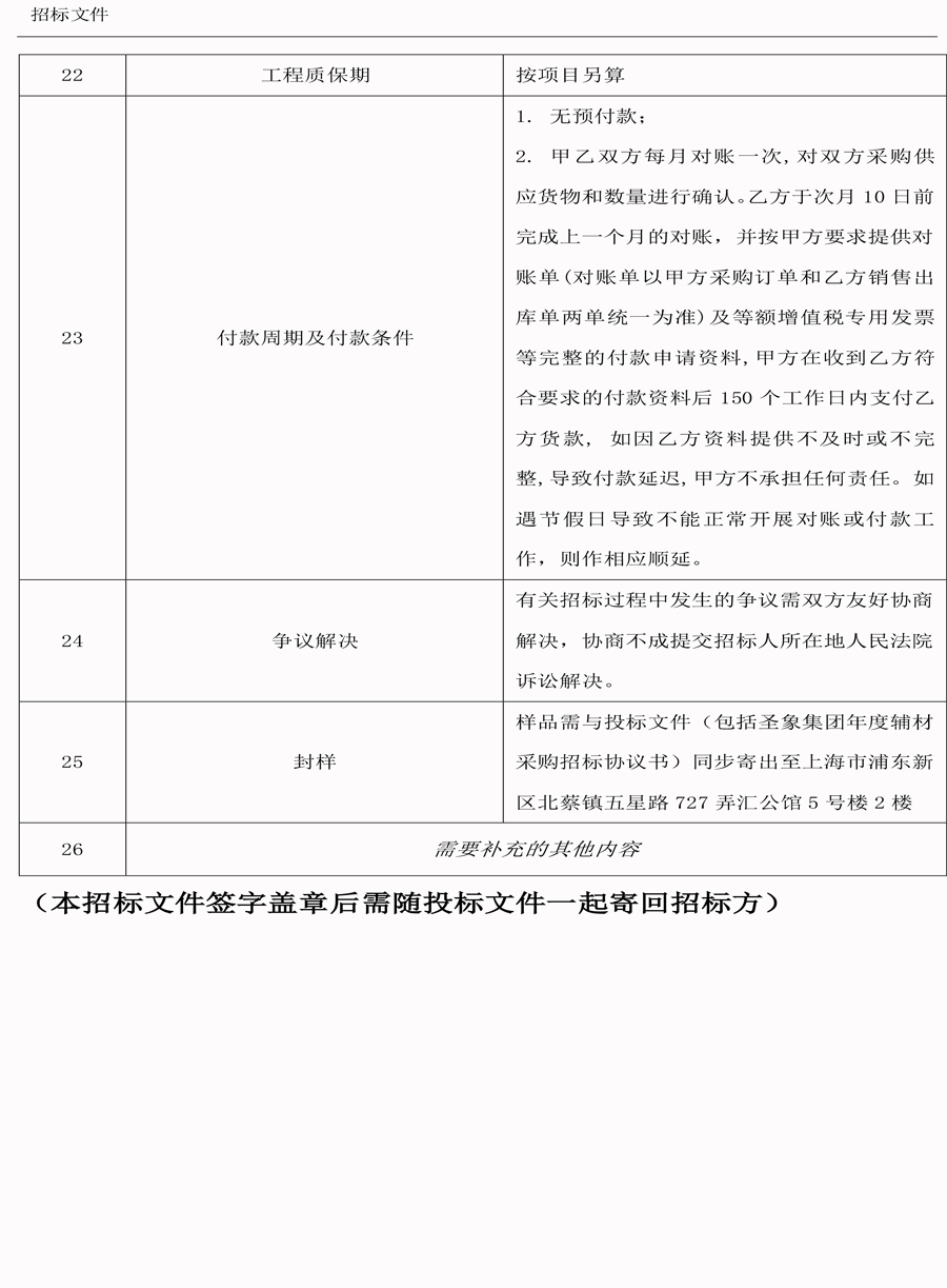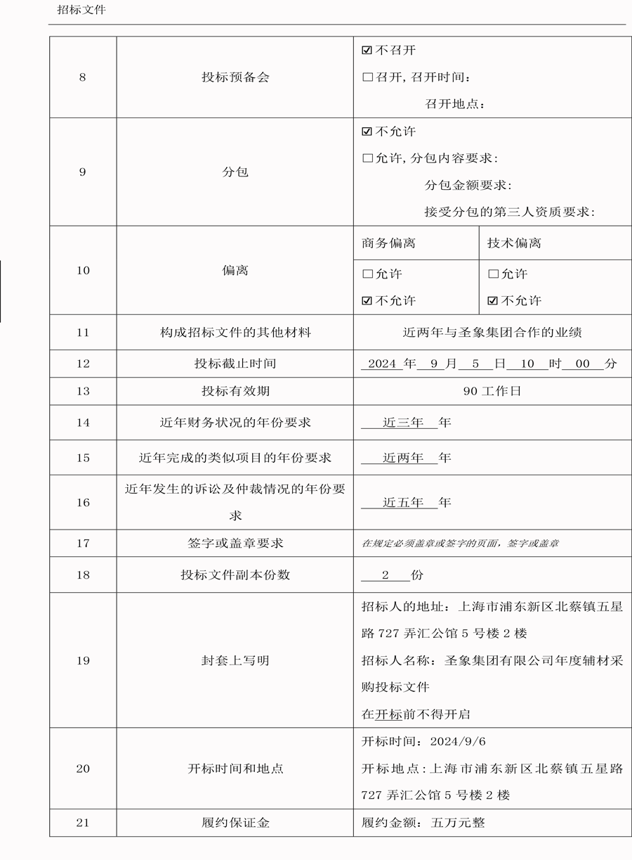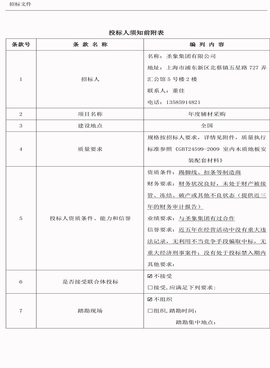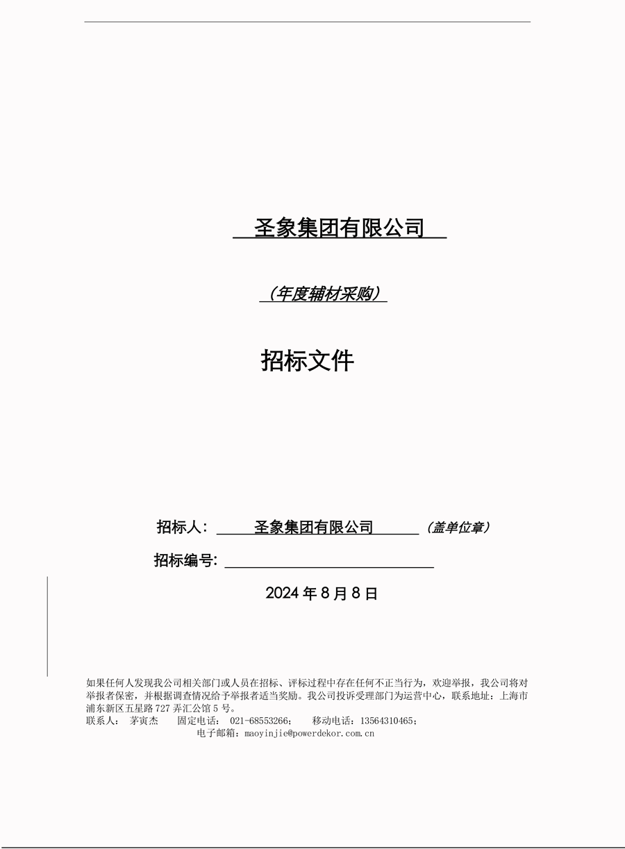 圣象集团有限公司(年度辅材采购)招标文件