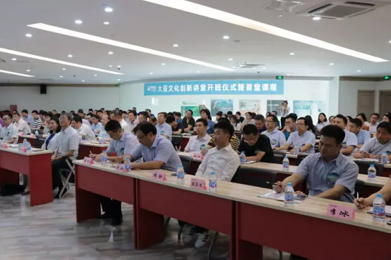 8月4日下午,大亚文化创新讲堂开班仪式暨首堂课程在大亚圣象家居体验馆举行。大亚集团董事局主席、总裁陈晓龙等集团领导、总部各职能部门负责人、各产业板块经营班子成员等出席了本次开班仪式。开班仪式上,董事局主席、总裁陈晓龙发表重要讲话,并宣布大亚文化创新讲堂正式成立!