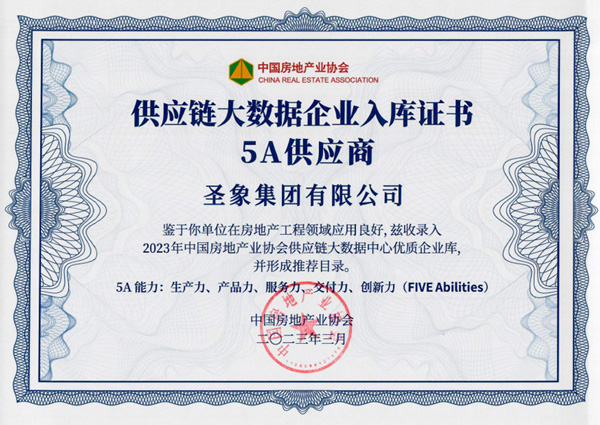 同时,圣象集团以5A供应商身份成功入选“2023年中国房地产业协会供应链大数据中心优质企业库”。屡次荣获此项殊荣,不仅是圣象集团大客户事业部长期深耕、开拓创新的结果,更是在“生产力、产品力、服务力、交付力、创新力五大维度上的全面胜利。