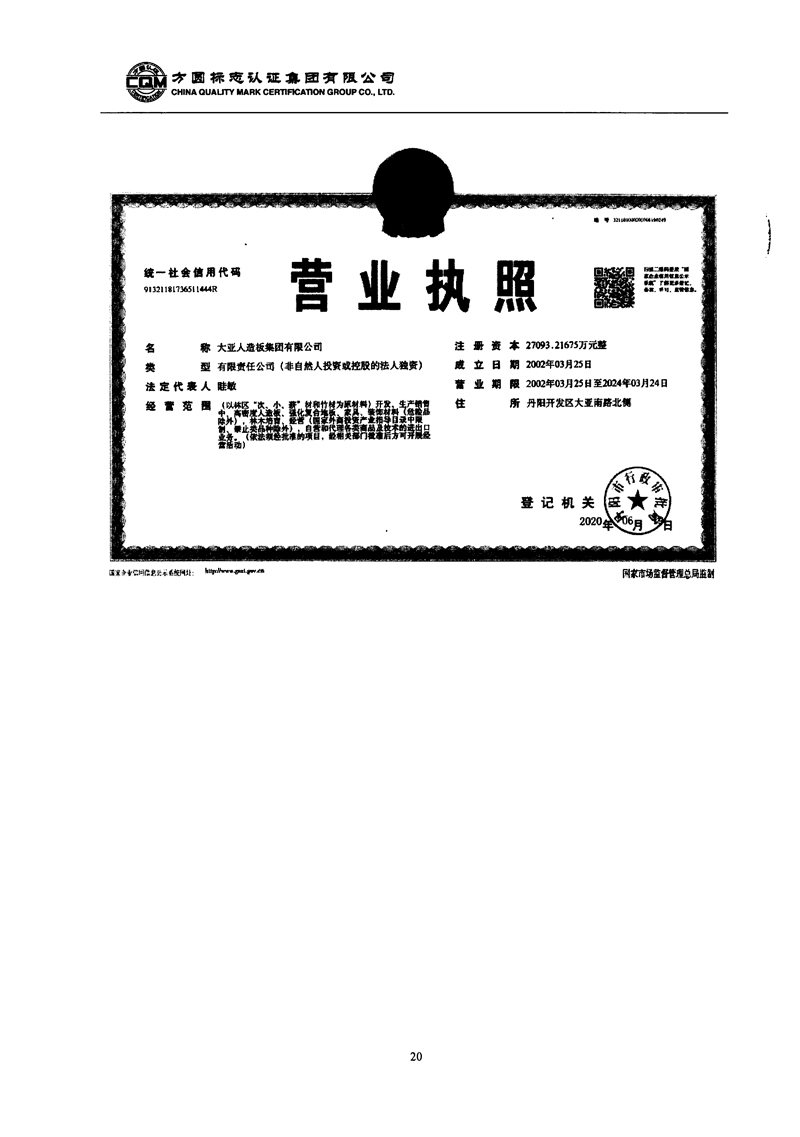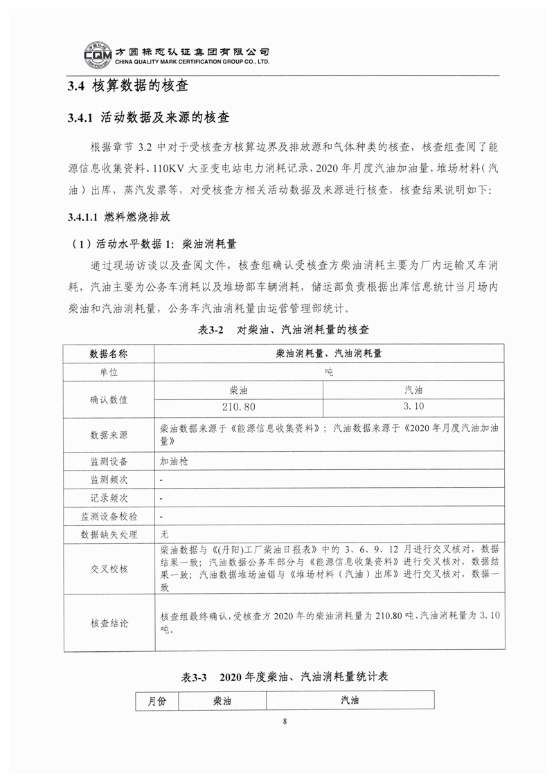 大亚人造板集团有限公司2020年度温室气体排放核查报告自主公示